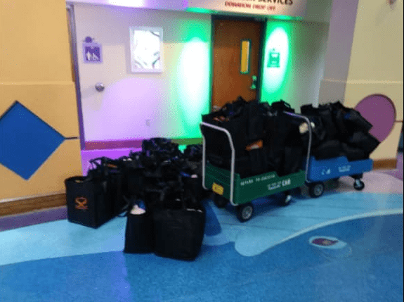 50 gift bags 30 cases of non perishable food for the parents room and Panera bread for the staff!